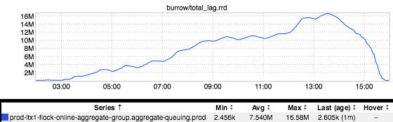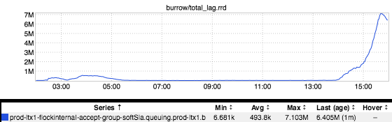 All of those messages got shuffled off onto yet another kafka topic…and the consumer of that kafka topic is explicitly rate-limited (for very good reasons, mostly having to do with not crushing downstreams). So, rather than draining the topic as quickly as possible, it started plodding along consuming messages at the rate limit that had been set. So, we waited.