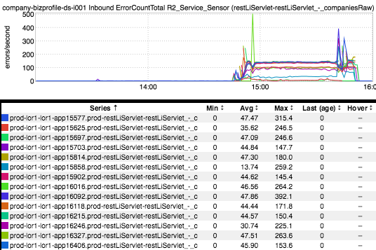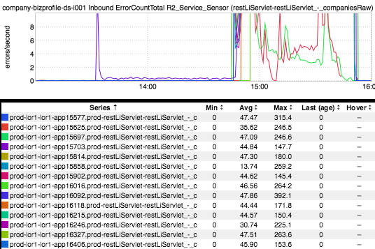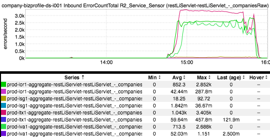 Still really nothing leading up to the GCN. What if we drop the week-over-week overlay, pick a single fabric (say, prod-lor1), and de-aggregate the data. Let’s see whether the individual canary host stands out: