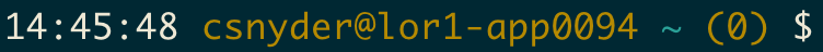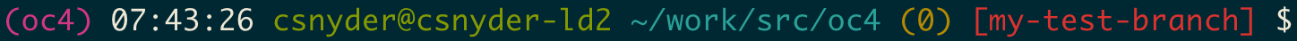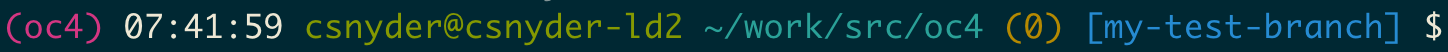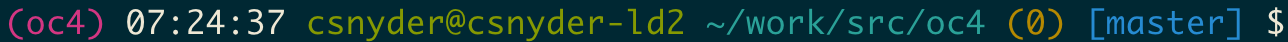 07:24:37 csnyder@csnyder-ld2 ~work/src/oc4 - The “standard” stuff here - current time, user, hostname, and working directory.