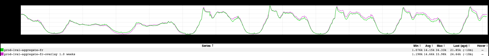 …but there’s something else interesting here…a week in the life of the French, right? The lulls at night and over the weekend (this is not unique to the French). The uptick at the beginning of each working day - perhaps they’re scrolling through the feed while commuting, or spending the first 20 minutes at work “catching up” before starting the business of the day in earnest. The regular dips at lunch- and dinner-time (the French do not mess around when it comes to meals). When I look at a graph like this I start to construct a narrative in my head - a story about what Jacques and Mathilde have been up to this week.