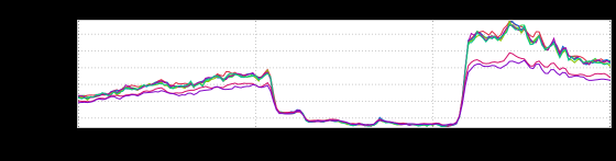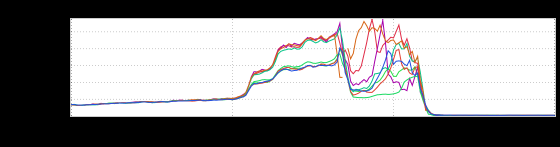 This is an inGraph of ProcessCPUTime, which according to the docs is “the CPU time used by the process on which the Java virtual machine is running in nanoseconds.” Leaving aside the bit where it gets all wibbly-wobbly (that would be the GCN) notice how those lines are nice and tight up until just after 07: 00, when they diverge. Another look at this phenomenon in a different fabric: