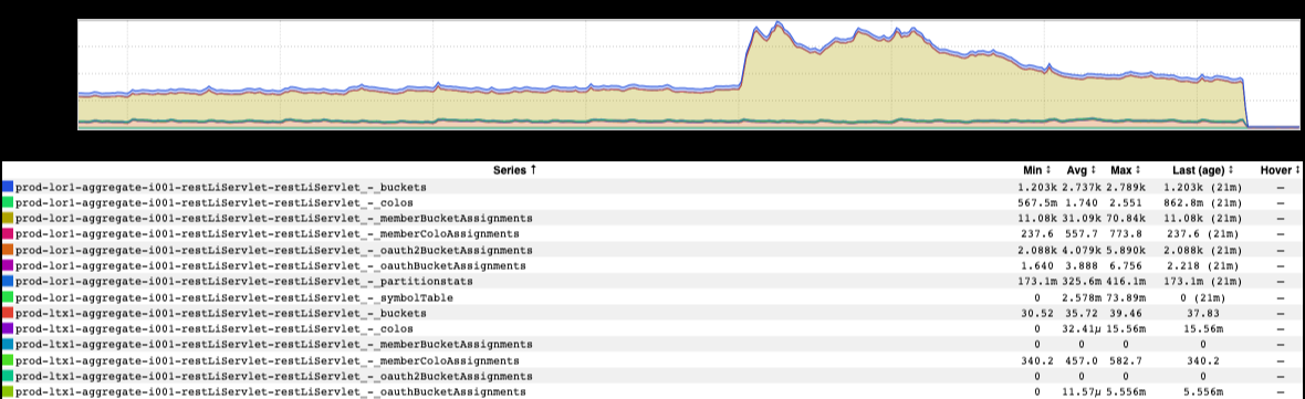 This was taken during the incident itself, so it isn’t (exactly) accurate. What I mean: various pieces of the stack that collect the metrics were busted at the time, so the very metrics themselves were unreliable at the time. …but it certainly paints a reasonable picture of what was going on in broad strokes.