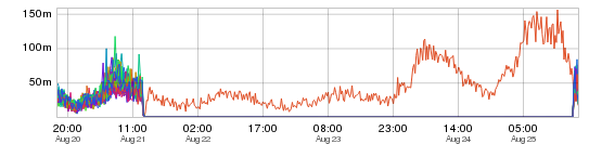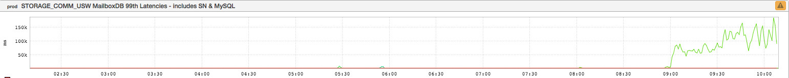 It’s a little hard to see what’s going on here but this is a single espresso storage node’s latency going off the charts, so to speak. Along similar lines: