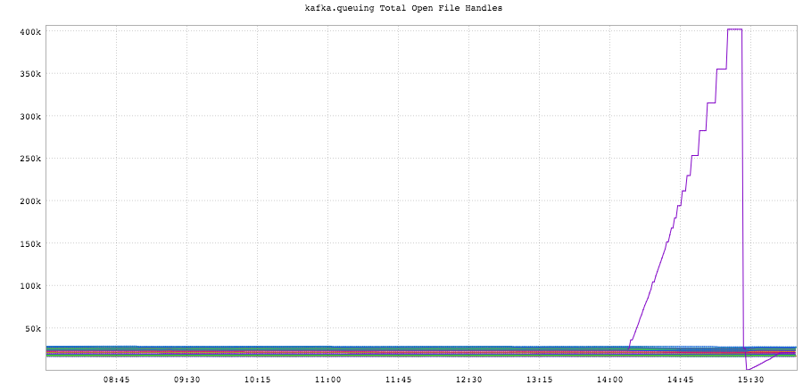 A kafka broker losing its mind wrt open file descriptors. And one of my favorites: