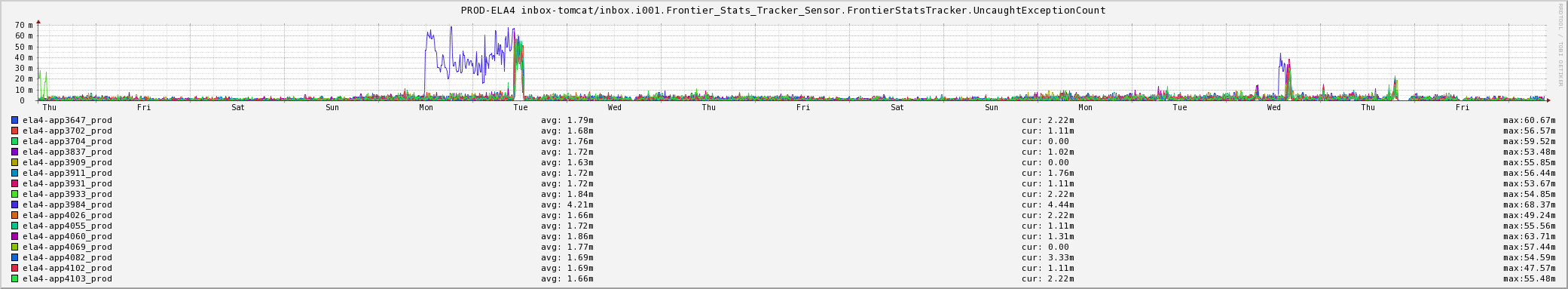 I’m diverging a bit from the “every 50th post” format here, simply because _the _actual 100th post was kind of a lame “Happy Thanksgiving” post. The week prior to that was a little more interesting - some experimental work around some cubism data viz stuff I happened to be playing with at the time. I’ve since mothballed that code (in fact cubism itself has been mothballed), but I like how it explored some interesting possibilities.