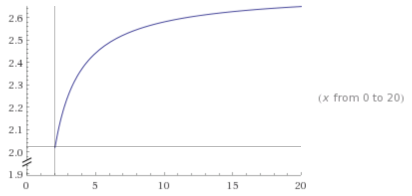 The axis is the number of subdivisions, and the axis is the factor that load increases. Notice that the lowest value is 2, and it xyonly goes up (and indeed approaches ).e