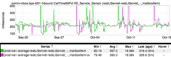 Update: _Fellyn Silliman from monitoring-infra brought up a really good point - this happens “only mostly” due to the way in which RRD interpolates data. _ It’s also important to note that inGraphs only has a finite number of pixels with which to work; i.e., inGraphs needs to downsample the data in order to be able to actually render it on your screen. The upshot of this downsampling: if you increase/decrease the size of your graph, the values being displayed can