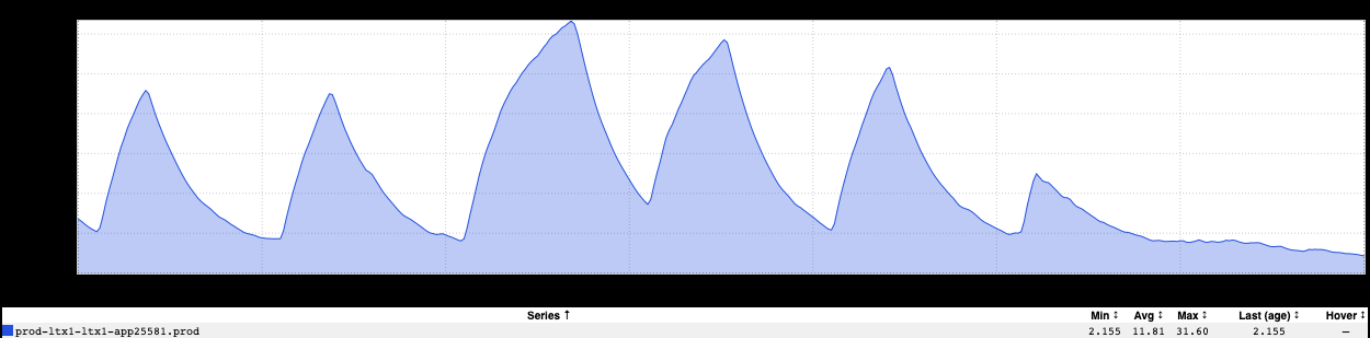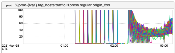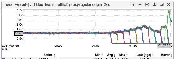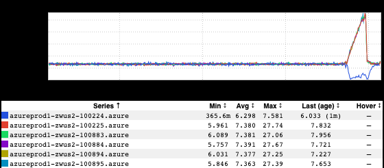 I dig the aesthetic of this one, but I’m not entirely sure what’s going on in it. If I had to hazard a guess I’d say maybe one misbehaving host generating a client retry storm on the hosts in good working order?