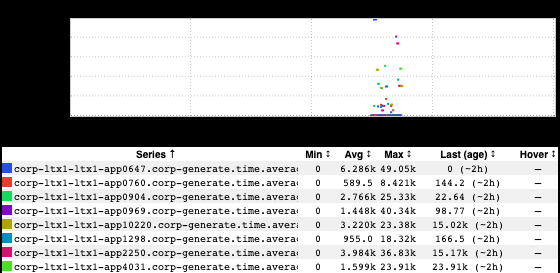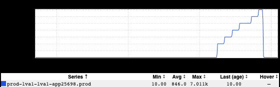 This one from Mykyta Gubenko has a more concrete explanation: chaos testing. Specifically, artificially injecting latency into a downstream call to see how a service handles it, resulting in this nice step function graph on 1000ms boundaries.