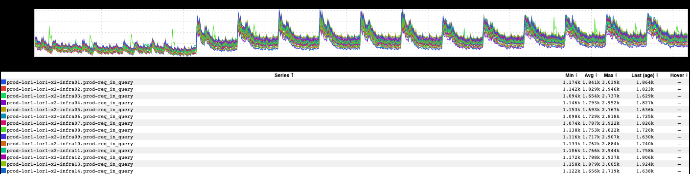 Then there’s this wonderfully-oscillating inGraph of inbound DNS queries from Ryan Underwood. Possible theory: some batch job that spins up at the top of every hour and starts making calls?