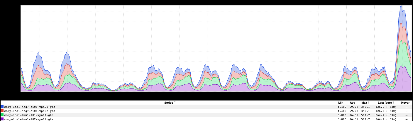 Next is one that I meant to post ~2 months ago…and completely forgot until today (sorry, Vishnu C N). This is how APAC/India VPN sessions spiked up on the first day of mandatory WFH for the Bangalore office: