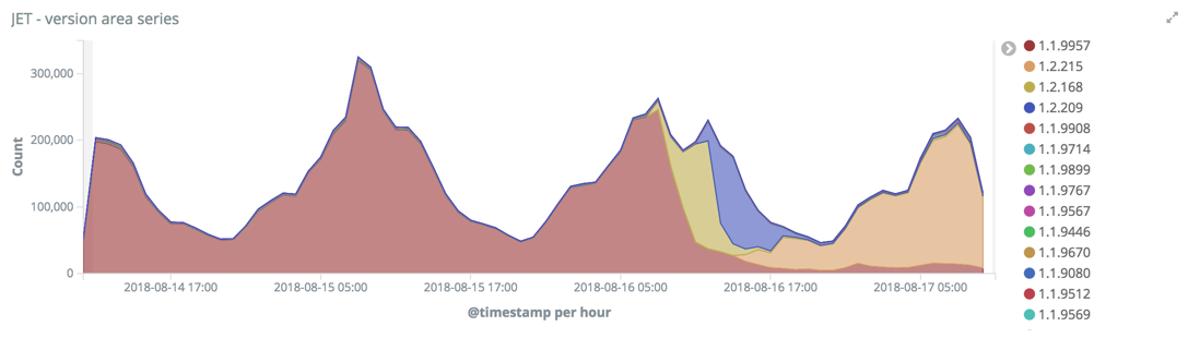 _After a long week (including another successful SRE[in]con) I’m pretty wiped out, so let’s just take a look at a few recent bits of UA. First up: thanks to _Alexs andra McMahan, a nifty little JET graph that helps visualize the versions of voyager-web in prod: